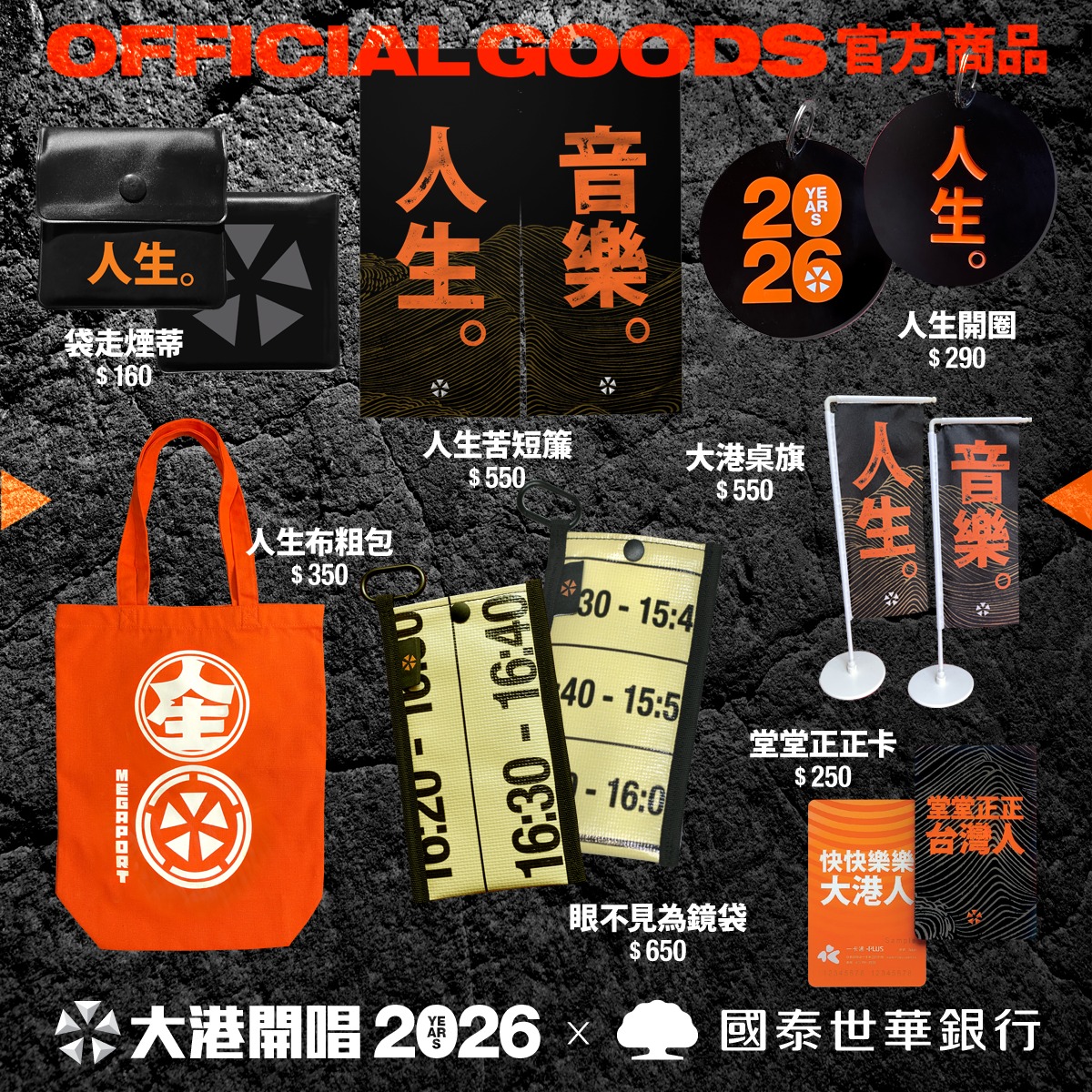 另外還特別準備印上人生字樣的「吉利卡襪」、裝好裝滿隨身就能帶著走的「人生布粗包」、以及能夠遮風擋煞的「人生苦短簾」等,都是今年熱門周邊商品。目前大港開唱周邊商品即日起到 2 月 9 日進行線上預購,相關資訊請洽大港開唱官方社群查詢。